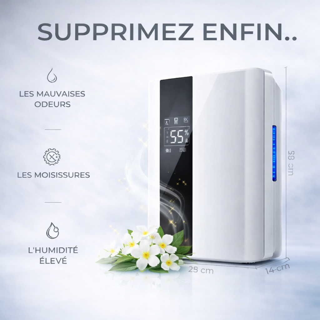 Un déshumidificateur d’air est un appareil destiné à réduire le taux d’humidité dans une pièce. Il peut contribuer à limiter la condensation et les effets liés à un air humide.